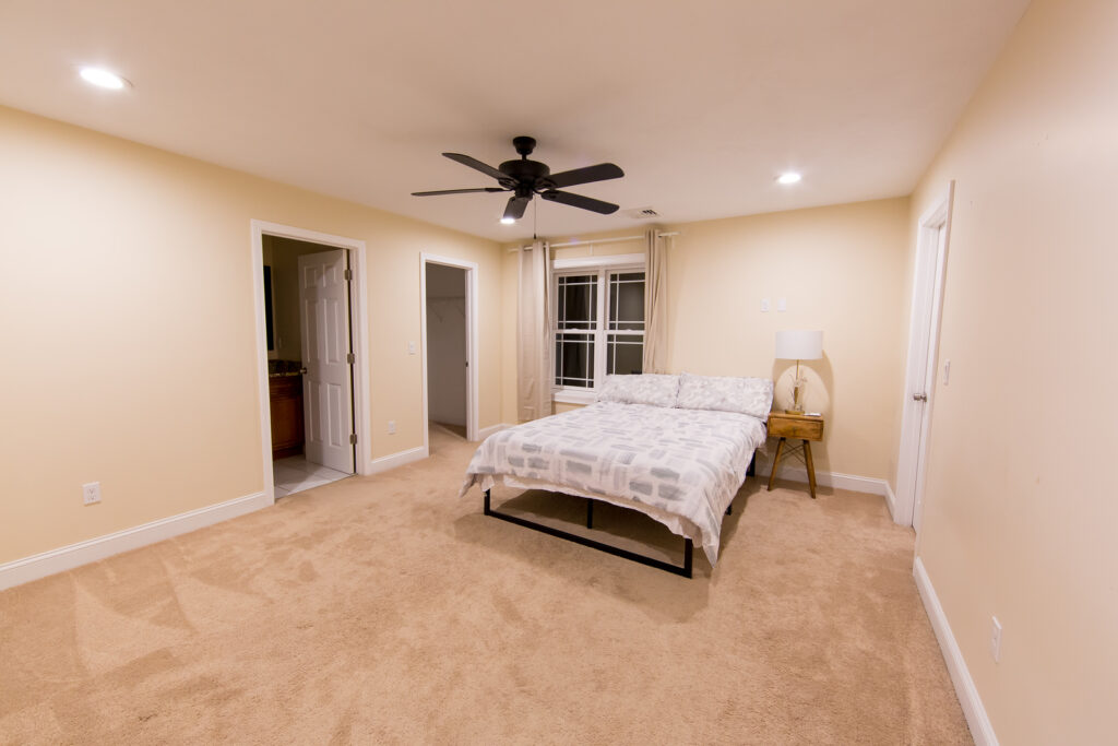 Primary bedroom suite with private bathroom, office and two walk-in closets