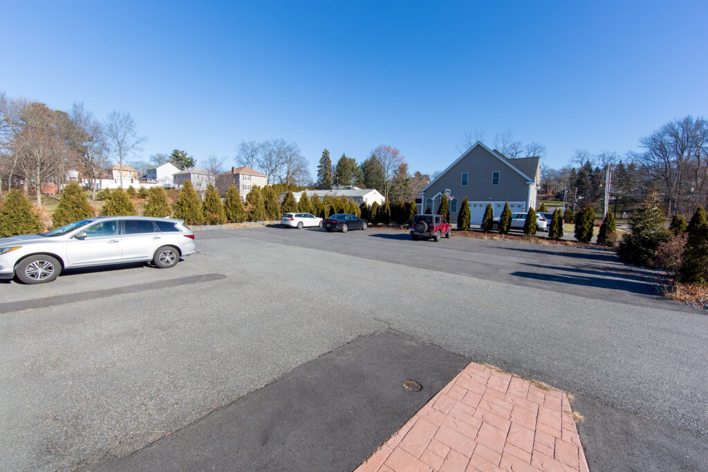 Private parking lot with plenty of parking spaces